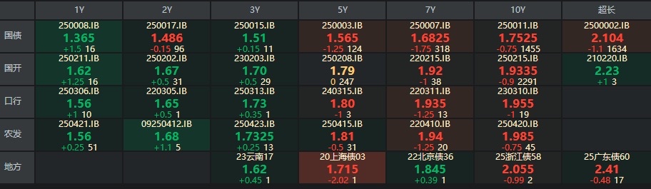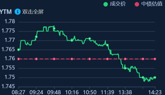 二、十年期国债收益率:1.75 -0.01%(国债收益率越涨,债市越跌,两者反向关系)