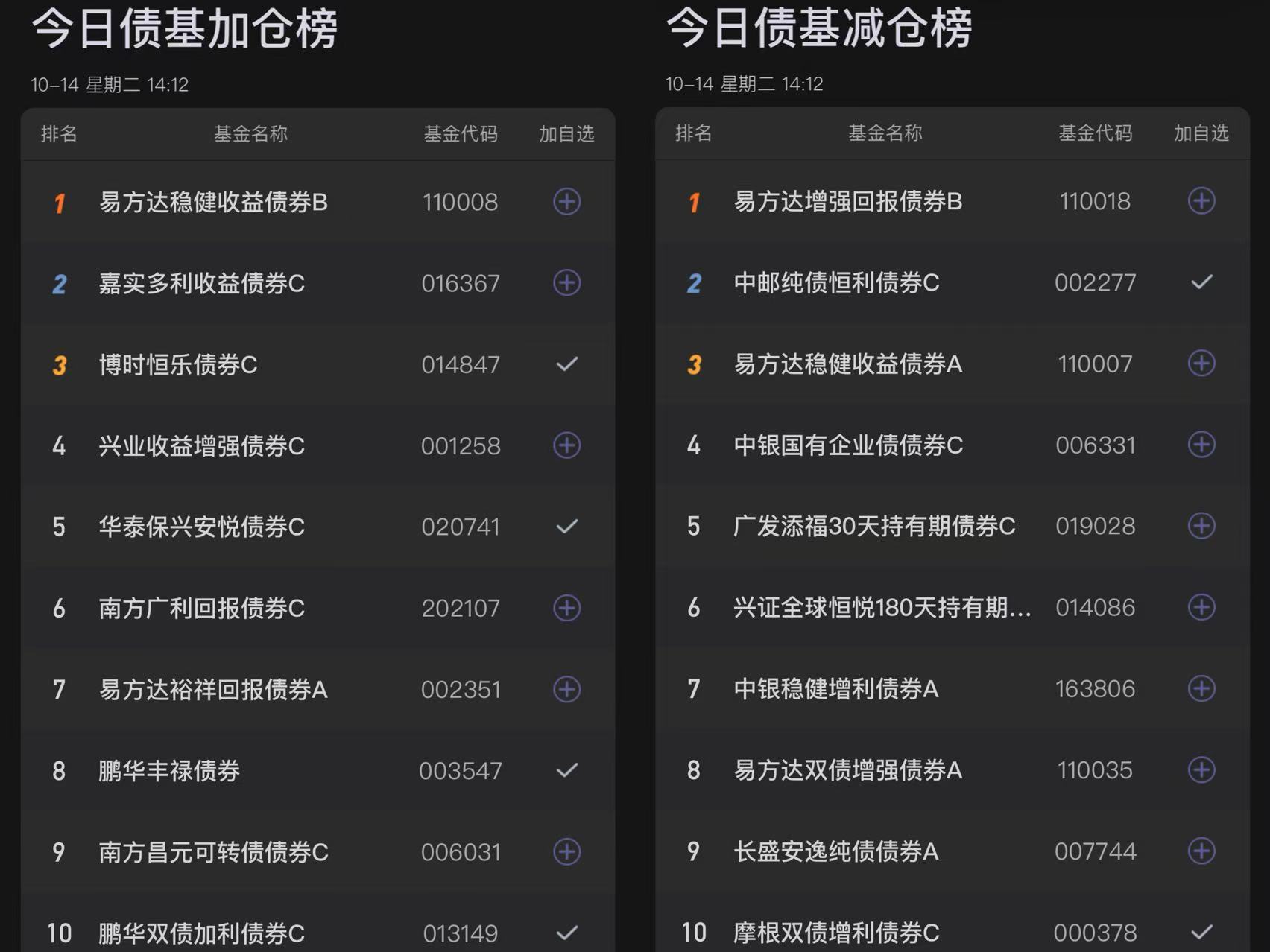 五、今日债基榜单: