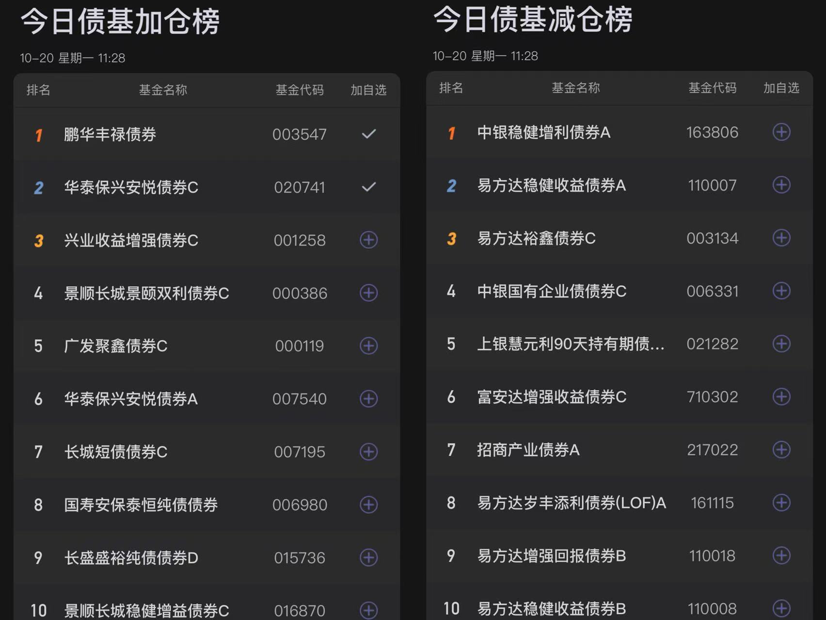 $博时恒乐债券C(OTCFUND|014847)$ $富国优化增强债券E(OTCFUND|018980)$ $南方中债7-10年国开行债券指数E(OTCFUND|013594)$ $东财瑞利债券C(OTCFUND|018445)$ $易方达安心回报债券A(OTCFUND|110027)$ $华夏双债债券A(OTCFUND|000047)$ $易方达中债3-5年期国债指数(OTCFUND|001512)$ $广发中债7-10年国开债指数A(OTCFUND|003376)$ $广发中债7-10年国开债指数E(OTCFUND|011062)$ $富国中债7-10年政策性金融债ETF发起式联接E(OTCFUND|019596)$ #人形机器人入厂经济账曝光:两年回本#