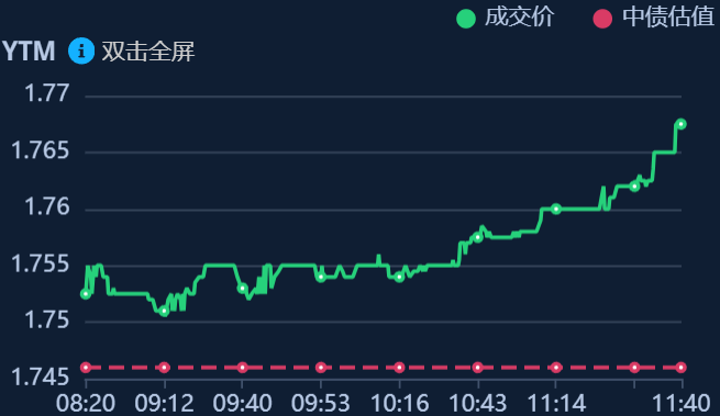 二、十年期国债收益率:1.769 0.023%(国债收益率越涨,债市越跌,两者反向关系)