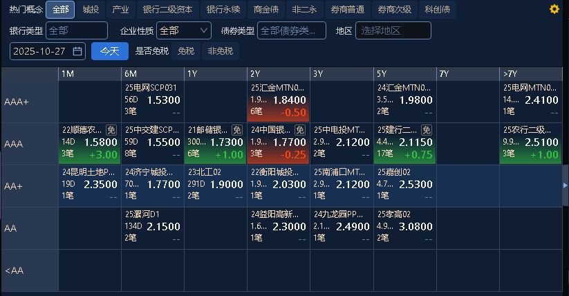 今日税期走款央妈实现大额净投放,呵护资金流动性,但资金面偏紧张!昨晚有了中美达成稳妥解决多项问题形成初步共识的消息面,市场风险偏好再次抬升,权益市场三大指数高开,银行间主要利率债收益率多数上行,曲线走陡,信用债也维持阴雨天气!