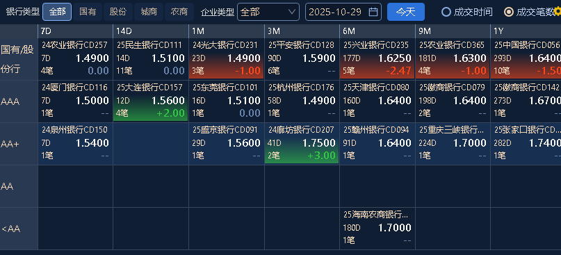 同业存单:偏晴