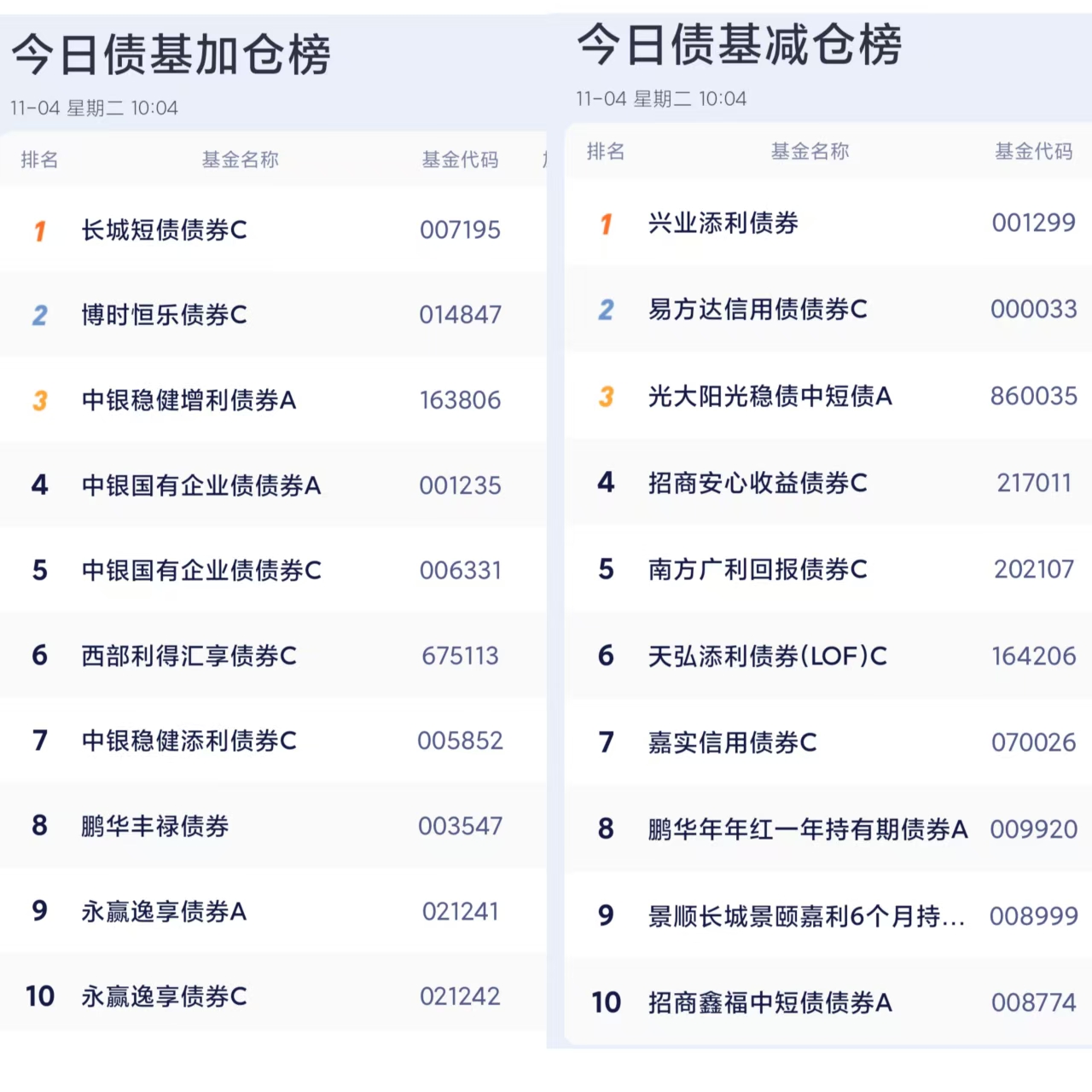 $平安恒泽混合C(OTCFUND|009672)$$博时恒乐债券C(OTCFUND|014847)$$易方达增强回报债券A(OTCFUND|110017)$$长盛全债指数增强债券A(OTCFUND|510080)$$汇添富添添乐双盈债券C(OTCFUND|017593)$$光大增利收益债券C(OTCFUND|360009)$$华泰保兴安悦债券C(OTCFUND|020741)$$中银证券安弘债券A(OTCFUND|004807)$$银华盛泓债券A(OTCFUND|020955)$$南方中债7-10年国开行债券指数A(OTCFUND|006961)$