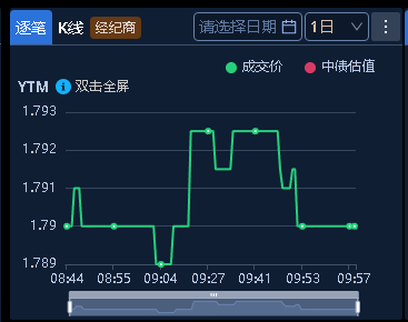 十年期国债收益率:1.79%,+0BP(国债收益率越跌,债市越涨)