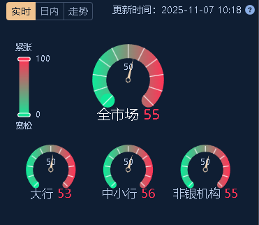 DR001报1.32%左右,DR007报1.39%左右,资金情绪紧张(CNEX资金面情绪指数在55)