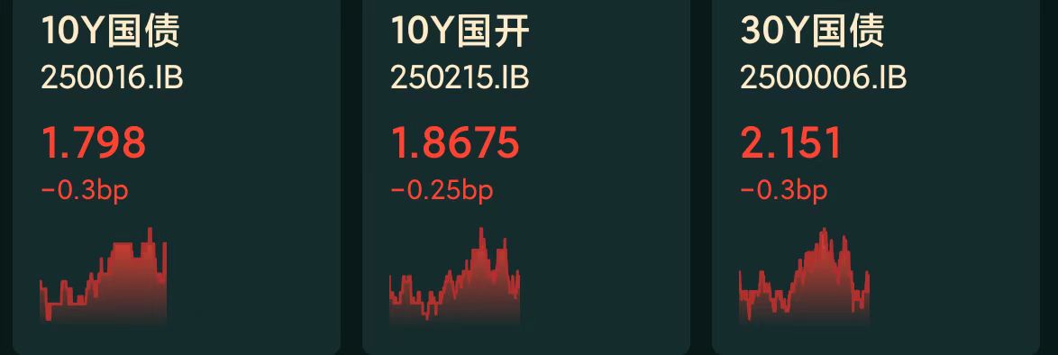 十年期国债收益率:1.798%,-0.3BP(国债收益率越跌,债市越涨)