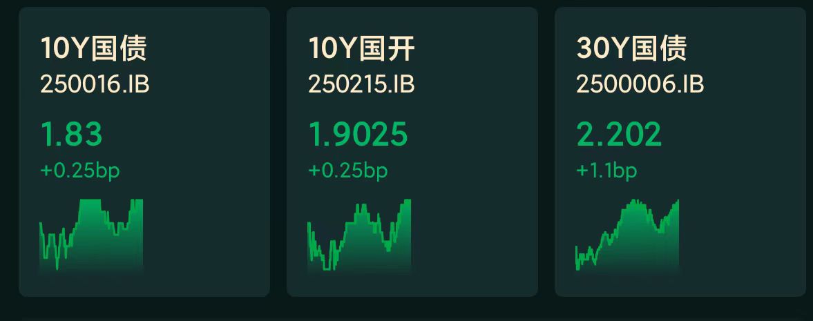 十年期国债收益率:1.83%,+0.25BP(国债收益率越跌,债市越涨)