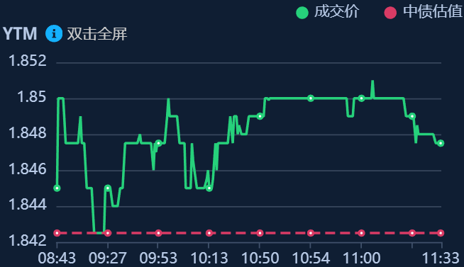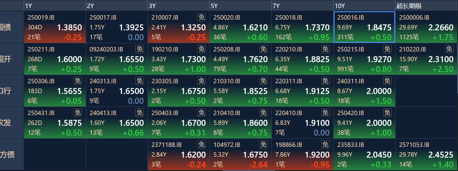 二、十年期国债收益率:1.8475 0.005%(国债收益率越涨,债市越跌,两者反向关系)