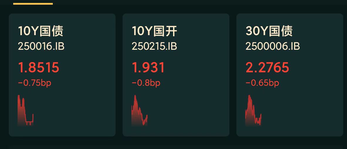 十年期国债收益率:1.8515%,+0.75BP(国债收益率越跌,债市越涨)