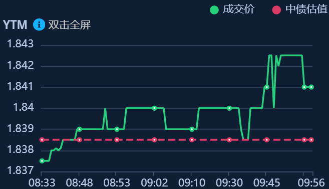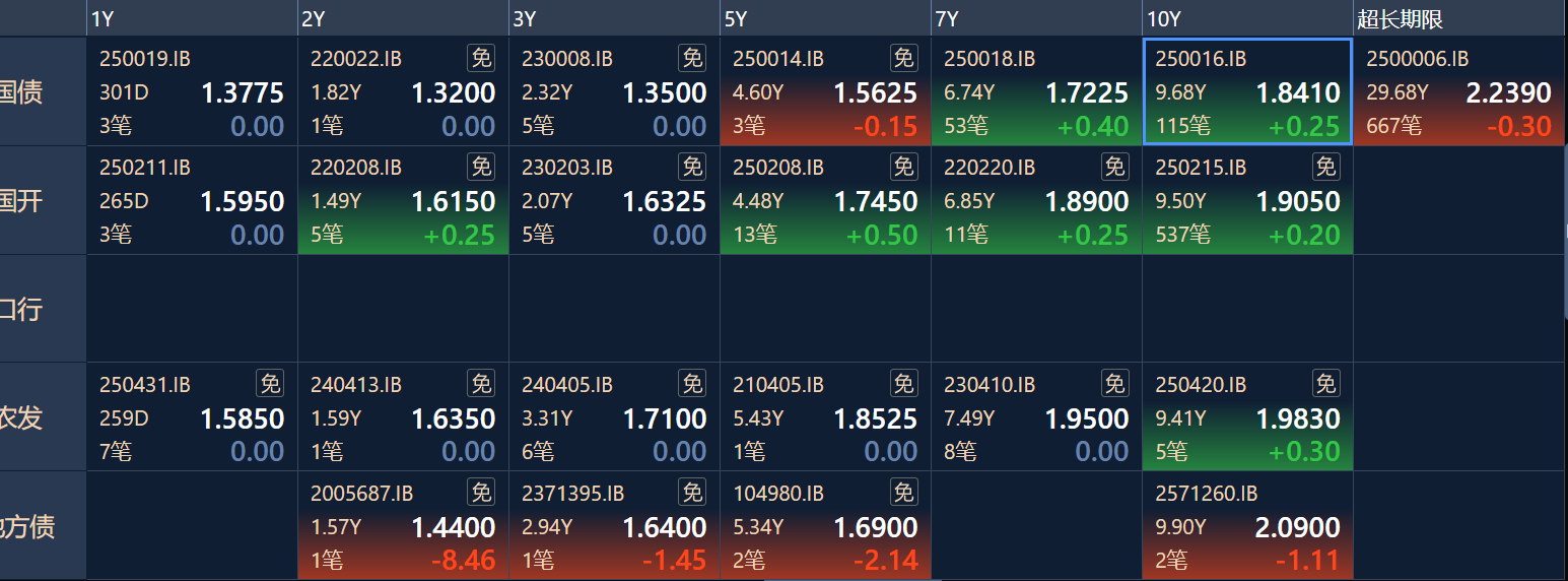 二、十年期国债收益率:1.841 0.0025%(国债收益率越涨,债市越跌,两者反向关系)