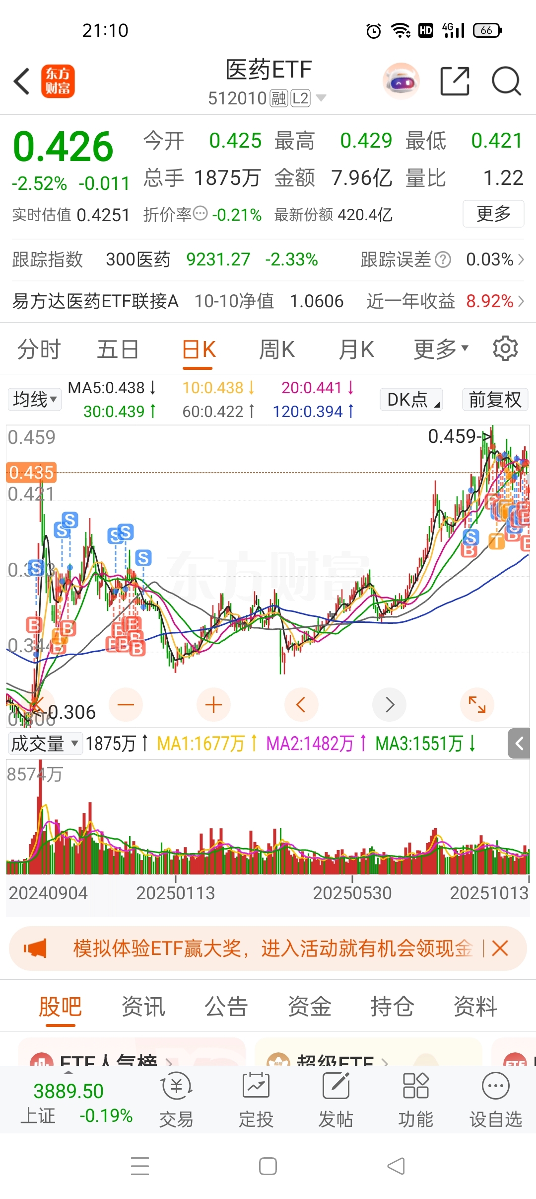 $医药ETF(SH512010)$ 我发现每次都是在大涨以后在山顶上玩来玩去最后割肉