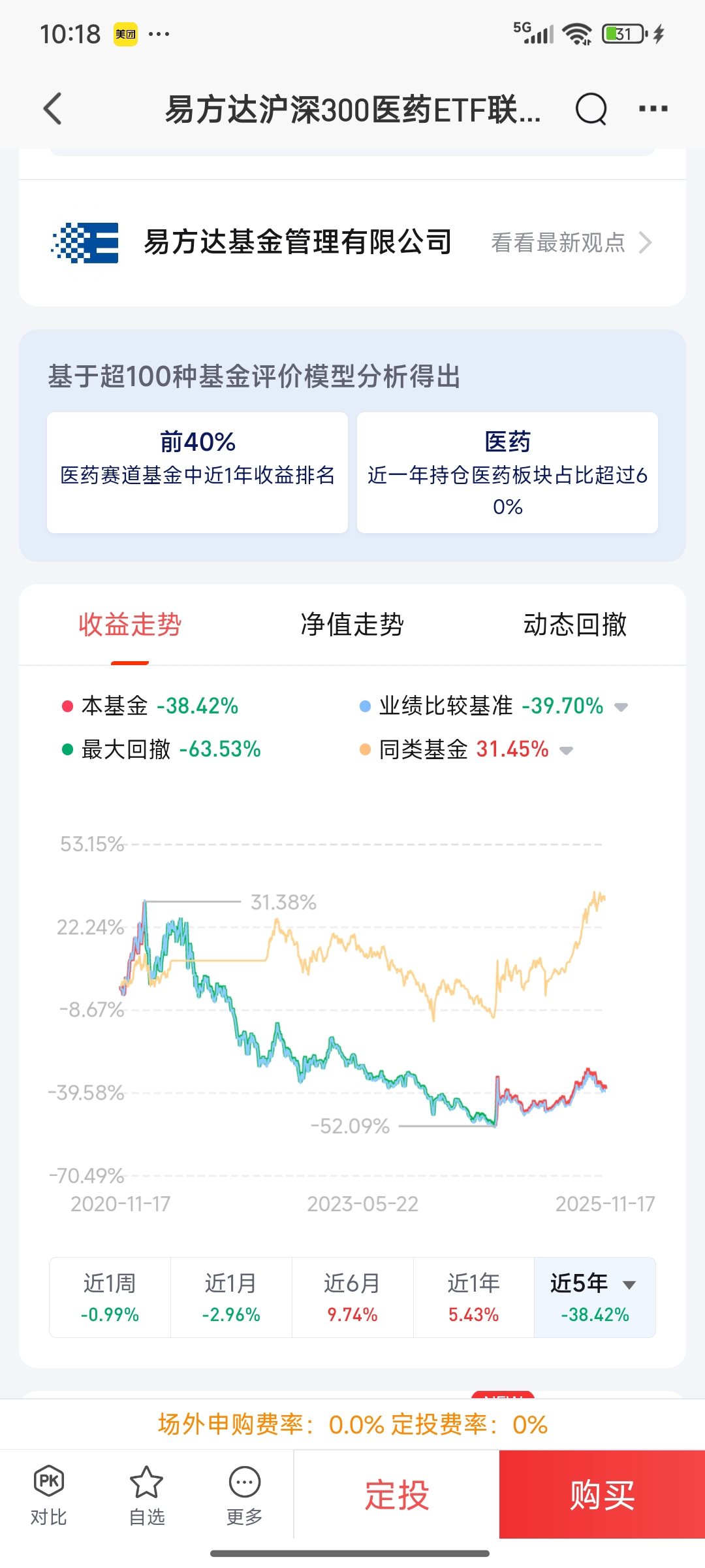 $医药ETF(SH512010)$ 五年亏40%,管理费收到手软
