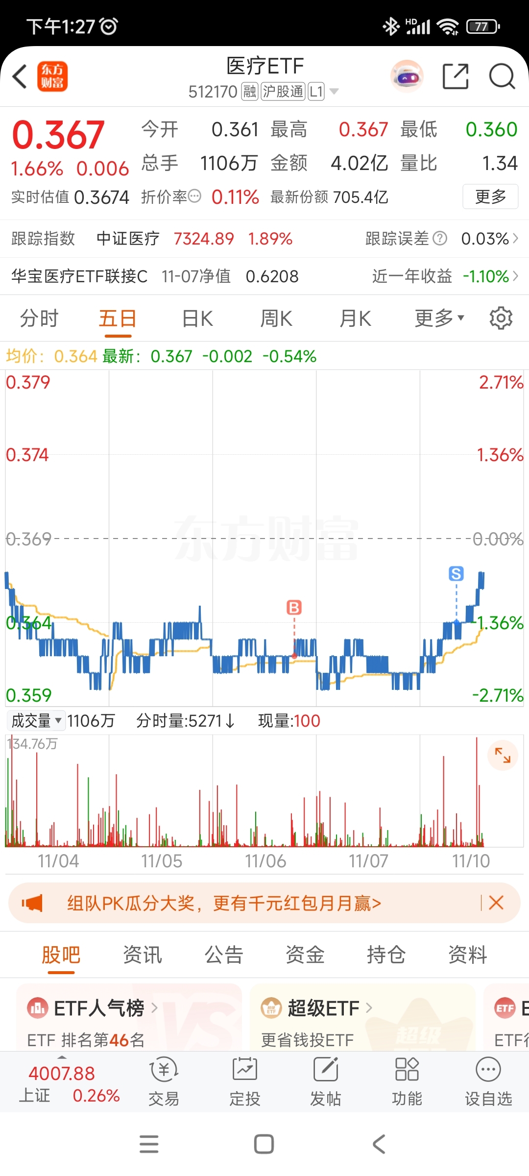 $医疗ETF(SH512170)$ 既然选择了抄一把,却被小创的阴线影响了心情!!多少年才能抄一把,竟然又做废了
