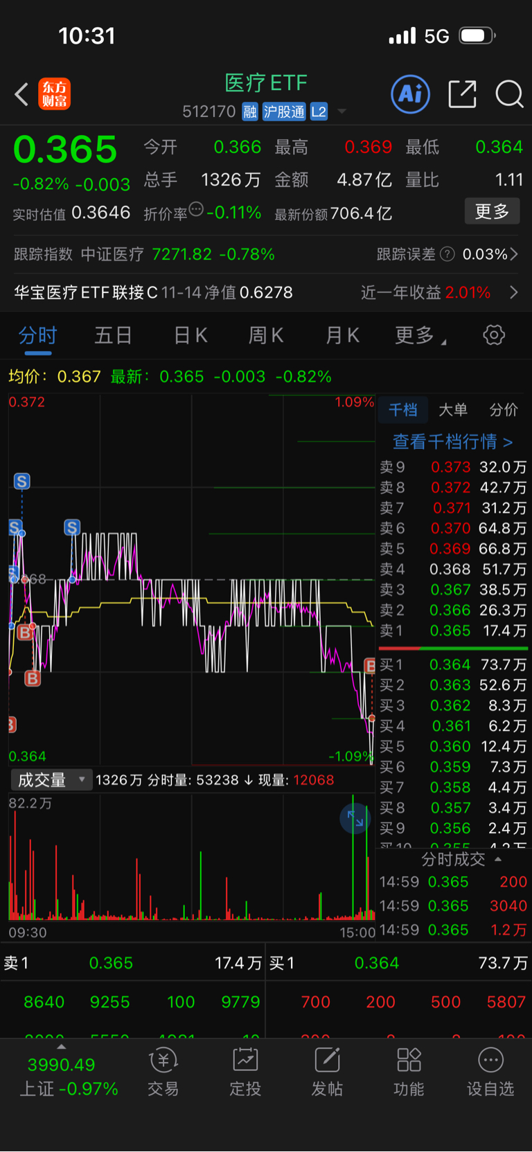 $医疗ETF(SH512170)$ 感觉比较安全,所以尾盘没忍住,又进来了……