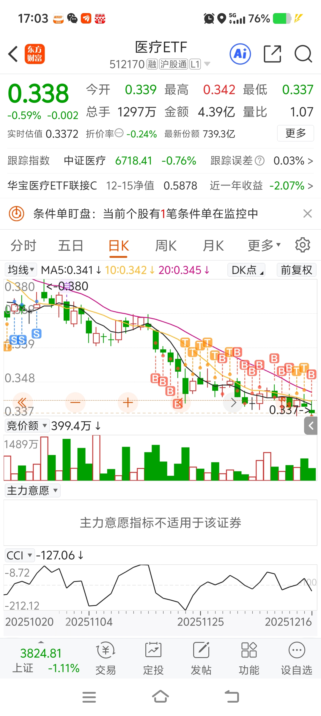 $医疗ETF(SH512170)$ 天天买,天天跌,现在7成仓,看你还能跌多久,大家成本多少啊?