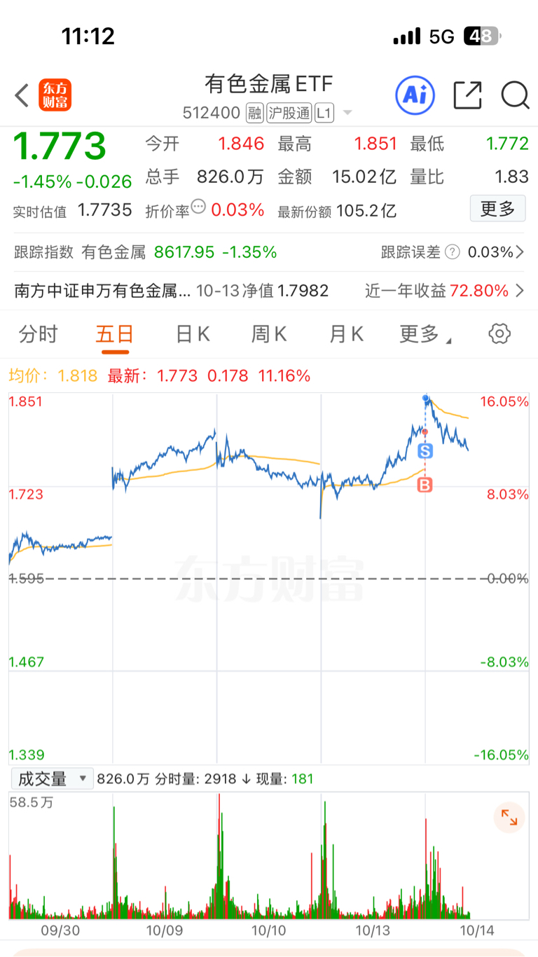 $有色金属ETF(SH512400)$ 追高集合竞价跑了