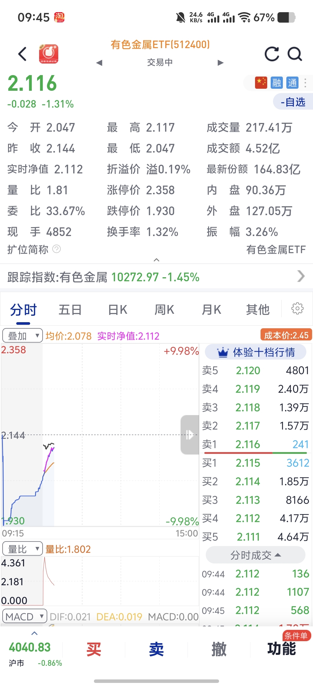 $有色金属ETF(SH512400)$ 天天跌开盘那么低,开盘这么低,本来想做 T 上了,但是我都不敢了,越套越深,