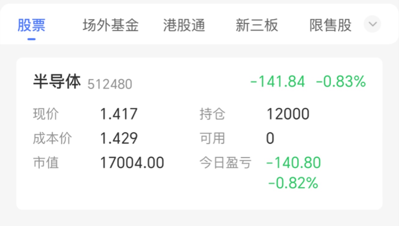 $半导体ETF(SH512480)$ 也算逃掉一部分下跌,跌破1.42后续预估还会继续向下,后续做T+减仓为主,等待机会