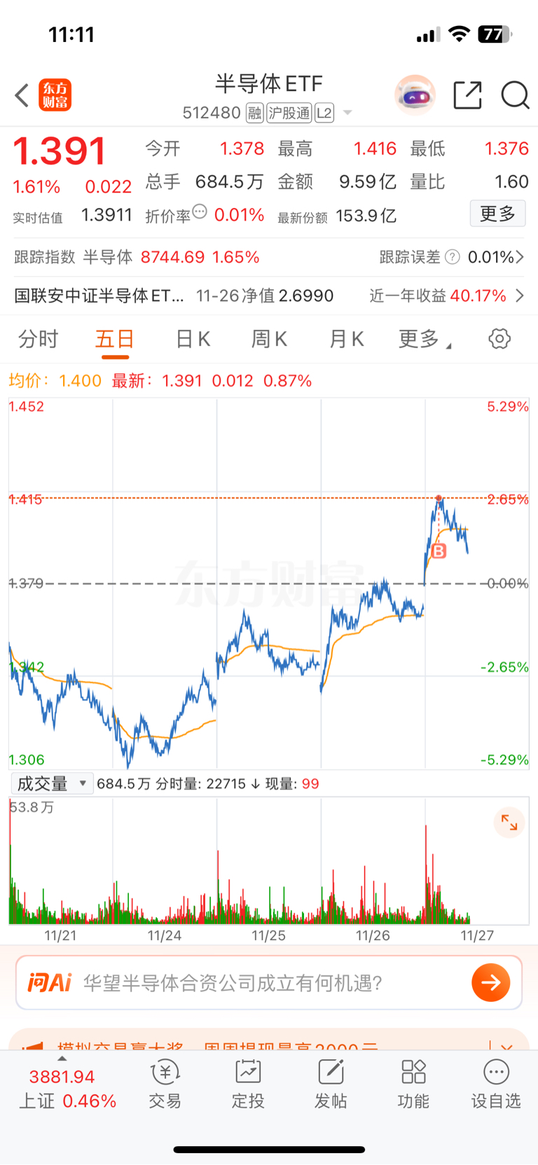 $半导体ETF(SH512480)$ 明天开盘就跑