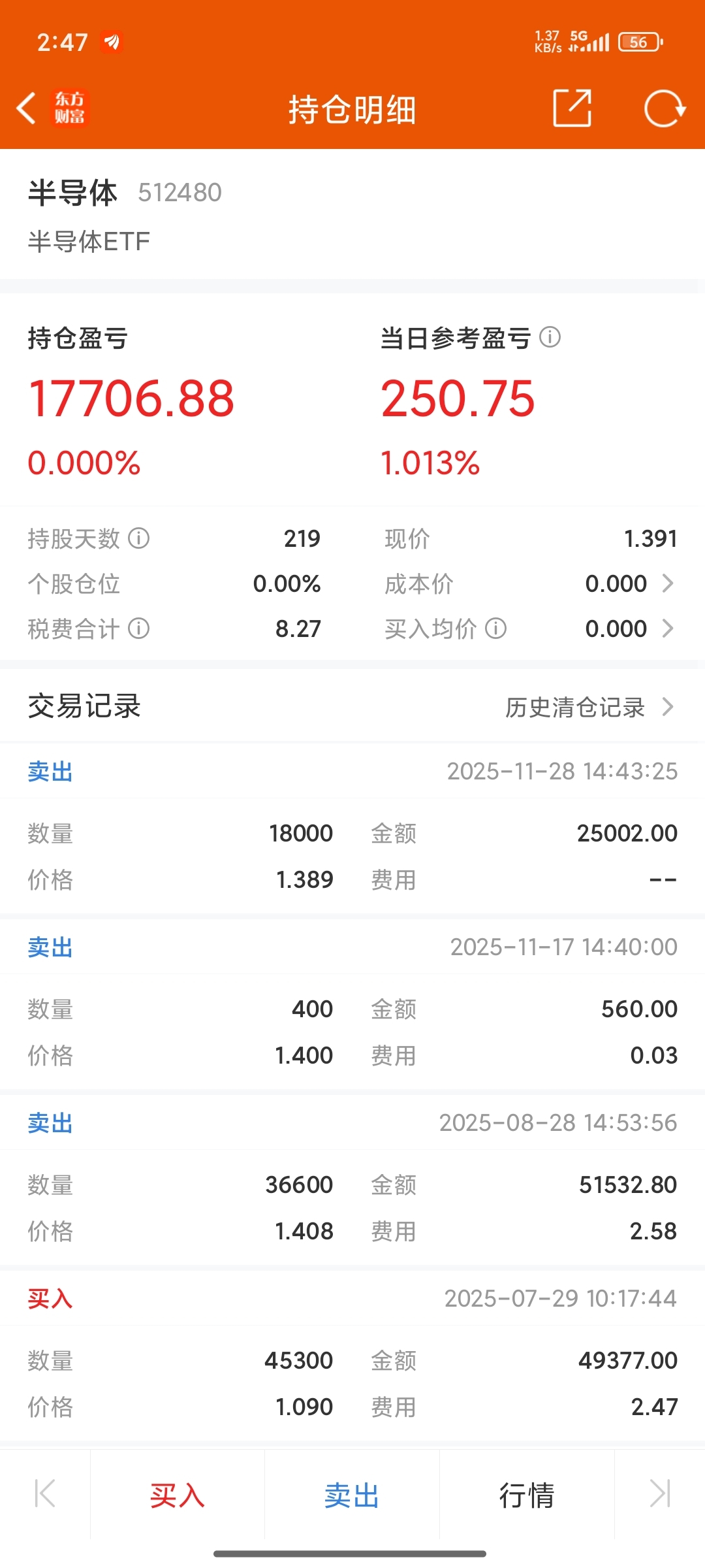 $半导体ETF(SH512480)$ #炒股日记# 半导体出清,等待机会再入。阶段获利了结。