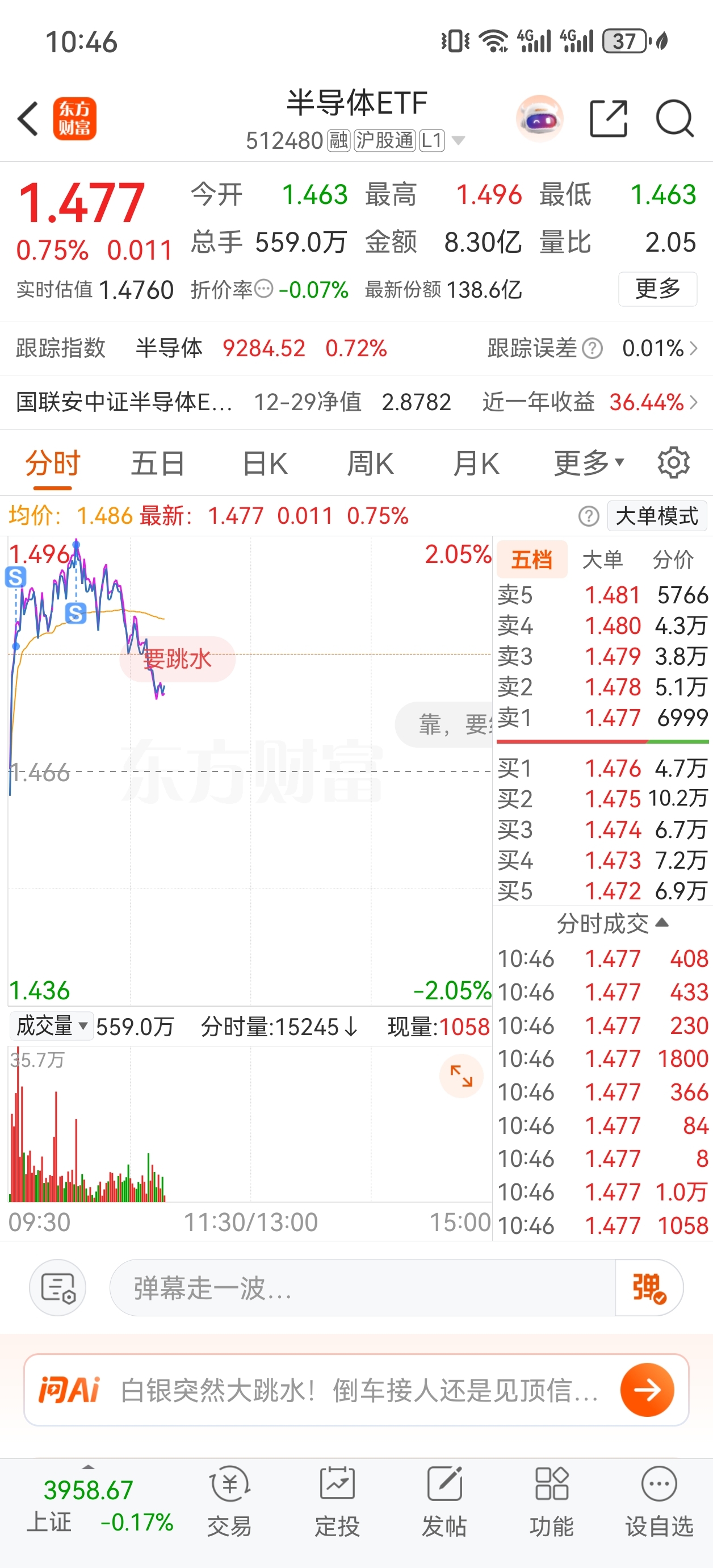 $半导体ETF(SH512480)$ 差一点就回本了,又跳了,清了半仓。