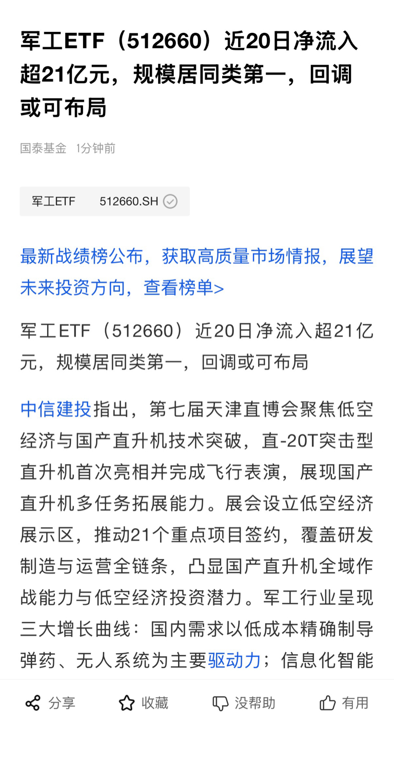 $军工ETF(SH512660)$ 这是真的还是假的?回本有望啦?