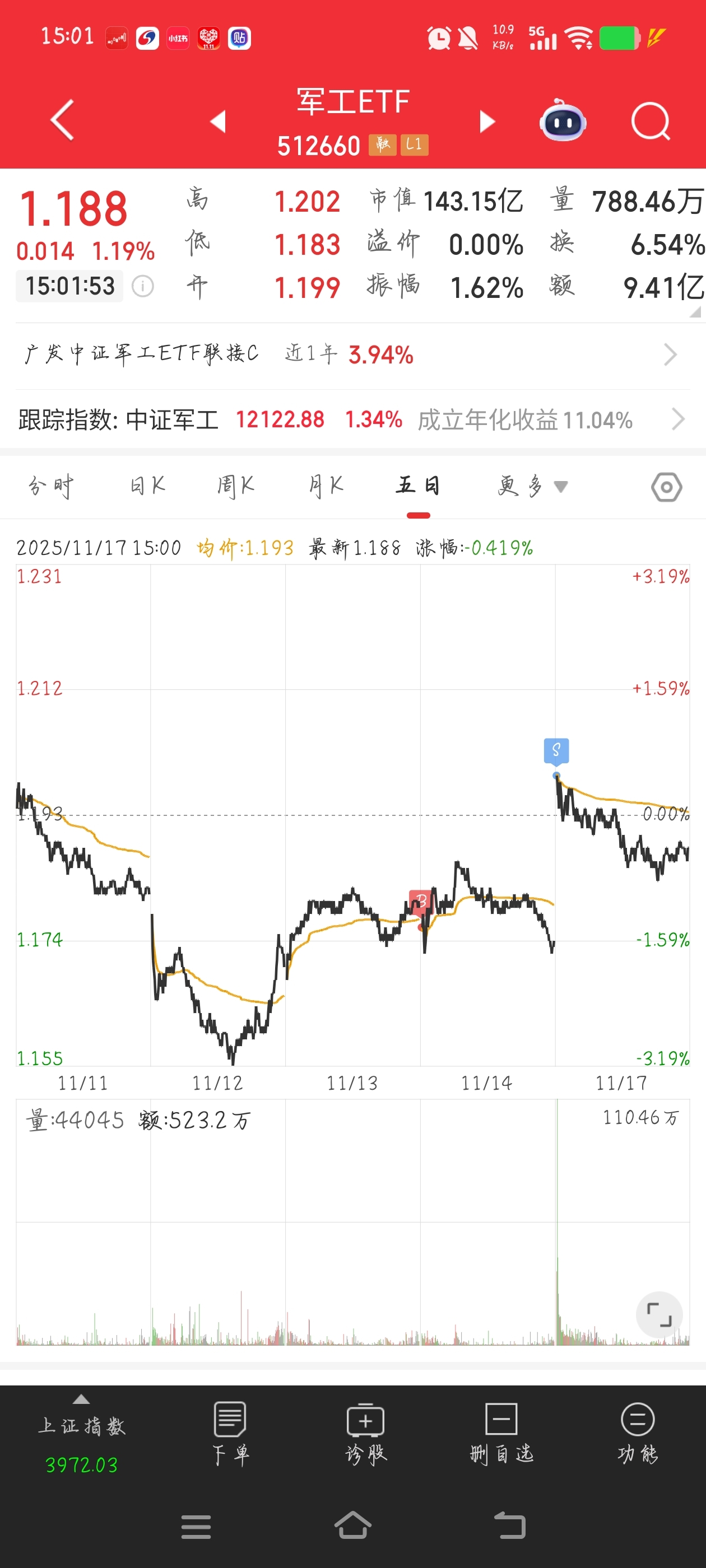 $军工ETF(SH512660)$ 大垃圾,高开必卖