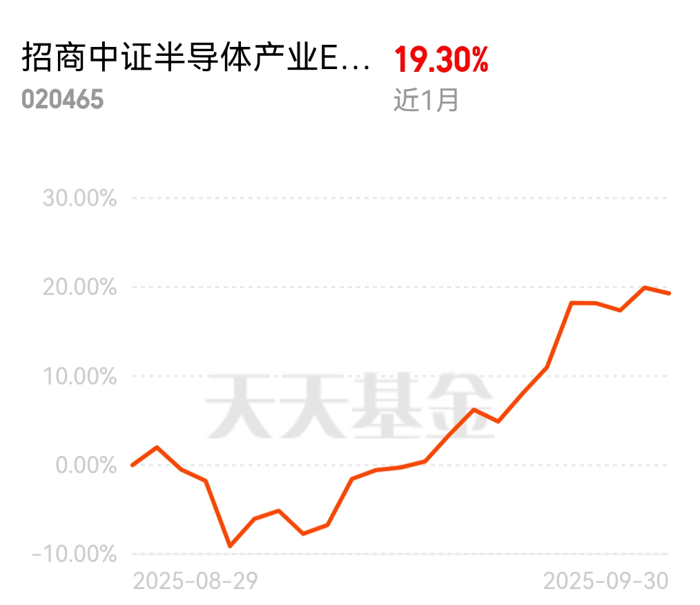 半导体双驱动,看头足。招商中证半导体产业ETF联接C近1个月19.30%,上车别过。$招商中证半导体产业ETF发起式联接C$