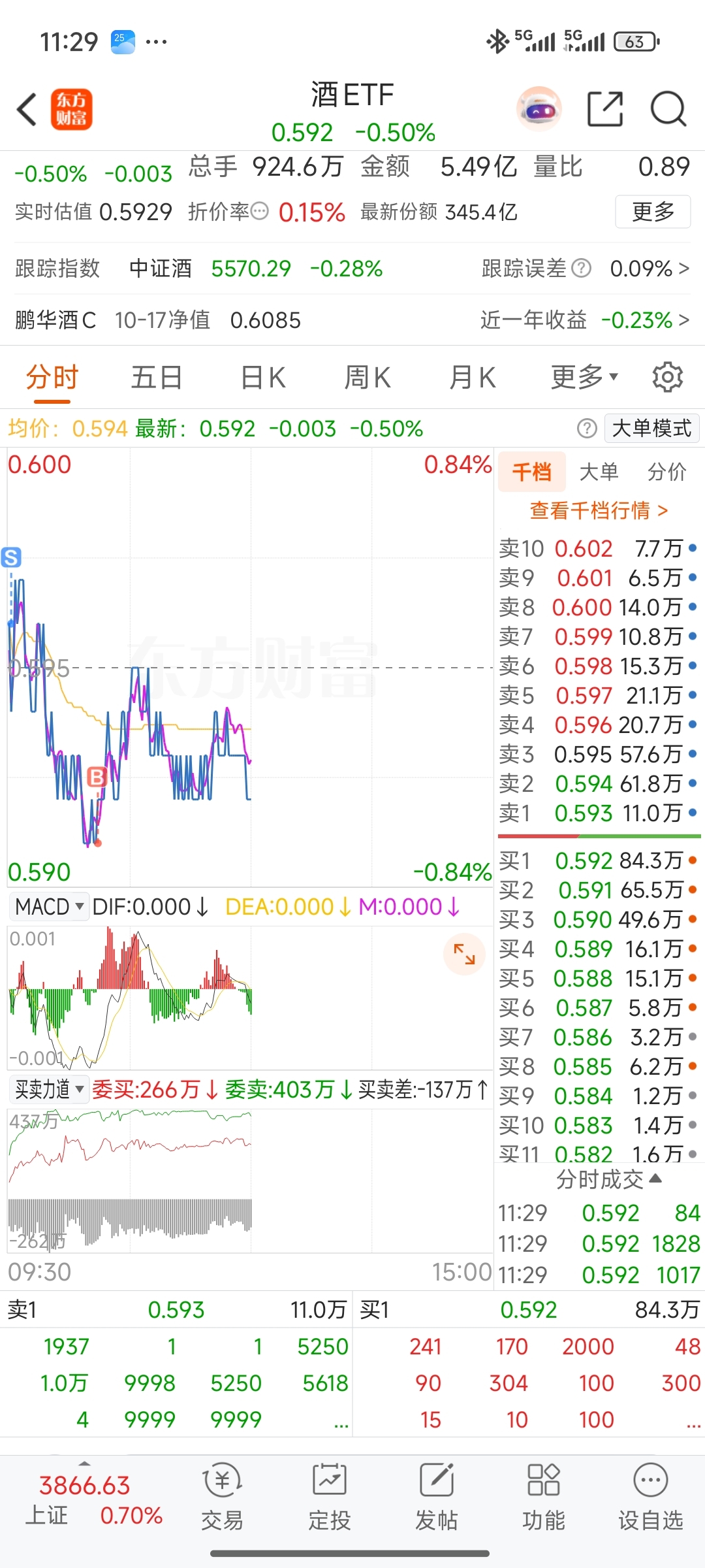 $酒ETF(SH512690)$ 开盘0.596跑了,0.591再接回来,吃了5厘,希望下午翻红。