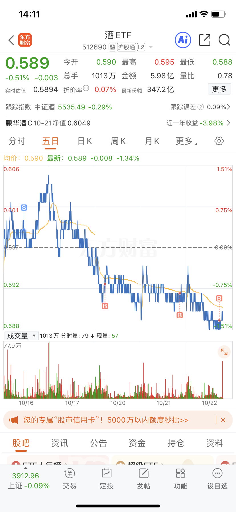 $酒ETF(SH512690)$ 不就比耐心么。你跌我就加