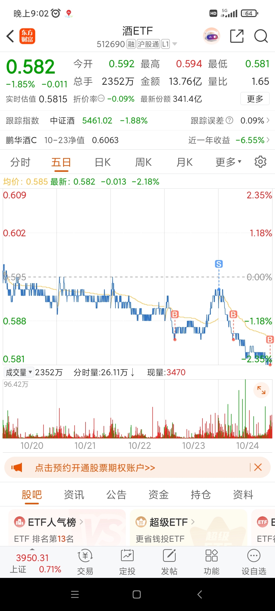 $酒ETF(SH512690)$ T到主力叫爸爸