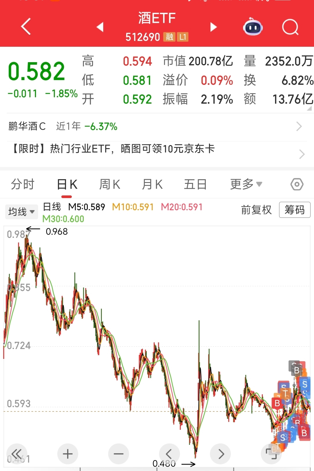 $酒ETF(SH512690)$ 好久没发了,因为白酒让我心痛,心情不好,不好开心。大家都在牛市赚钱。我却在白酒躲牛市,不进步赚钱。还亏钱