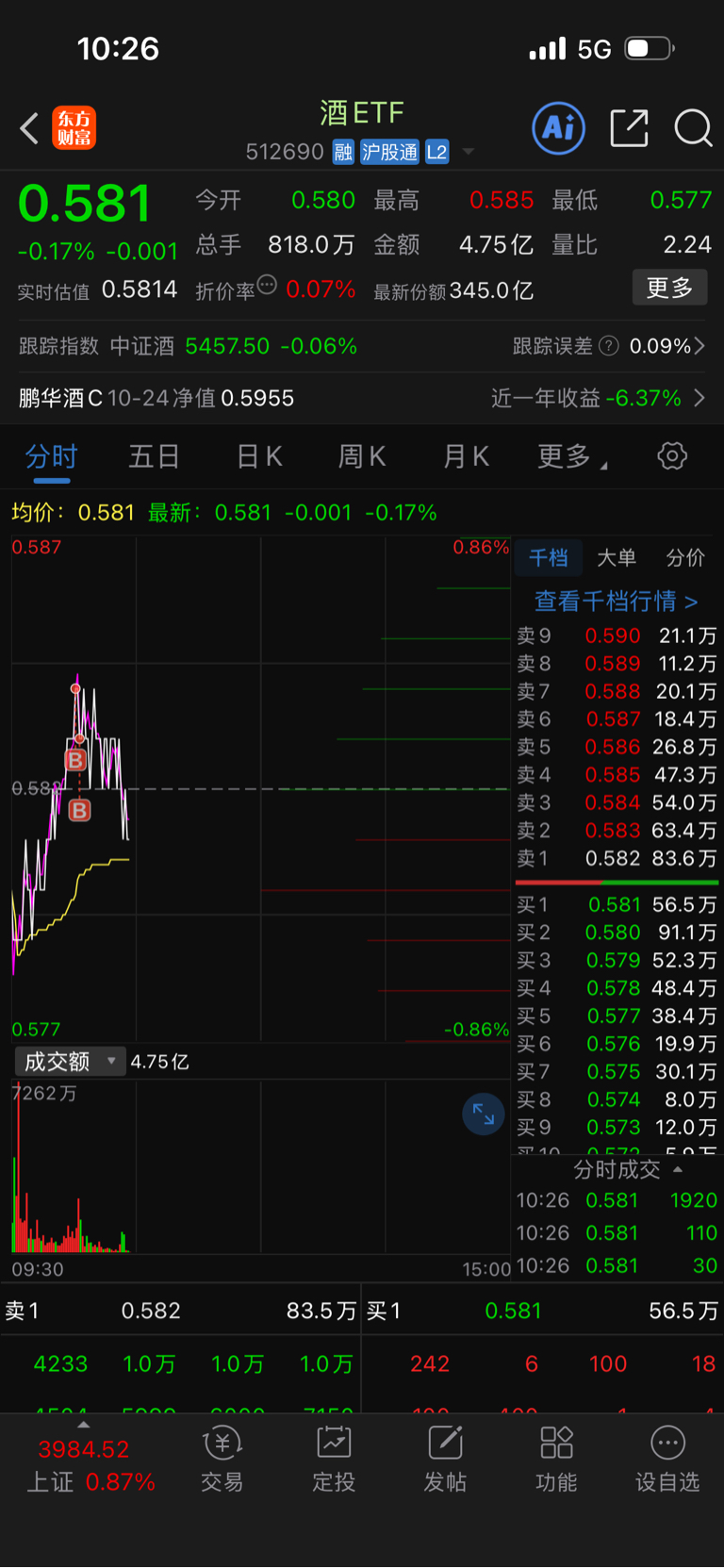 $酒ETF(SH512690)$ 584买了个次高价