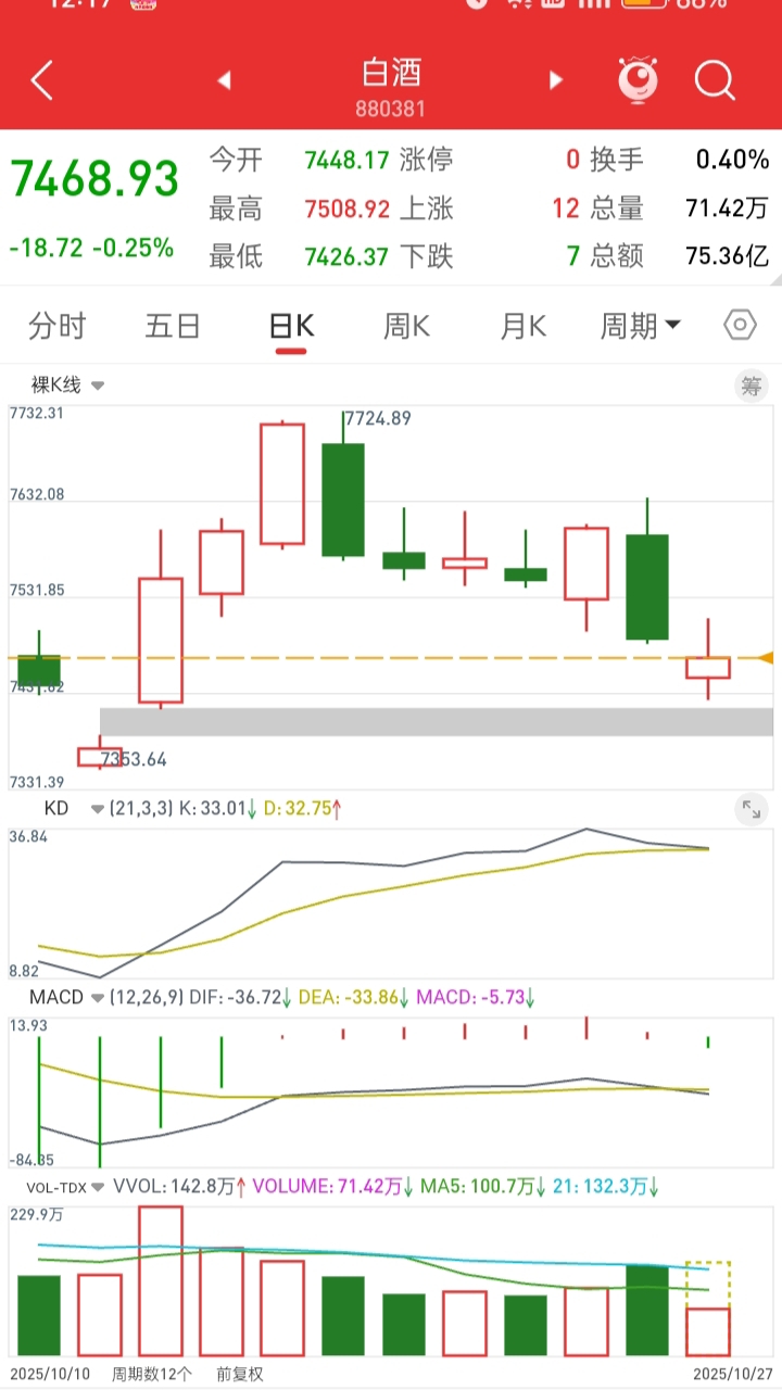 白酒下方有缺口,上午回踩了下