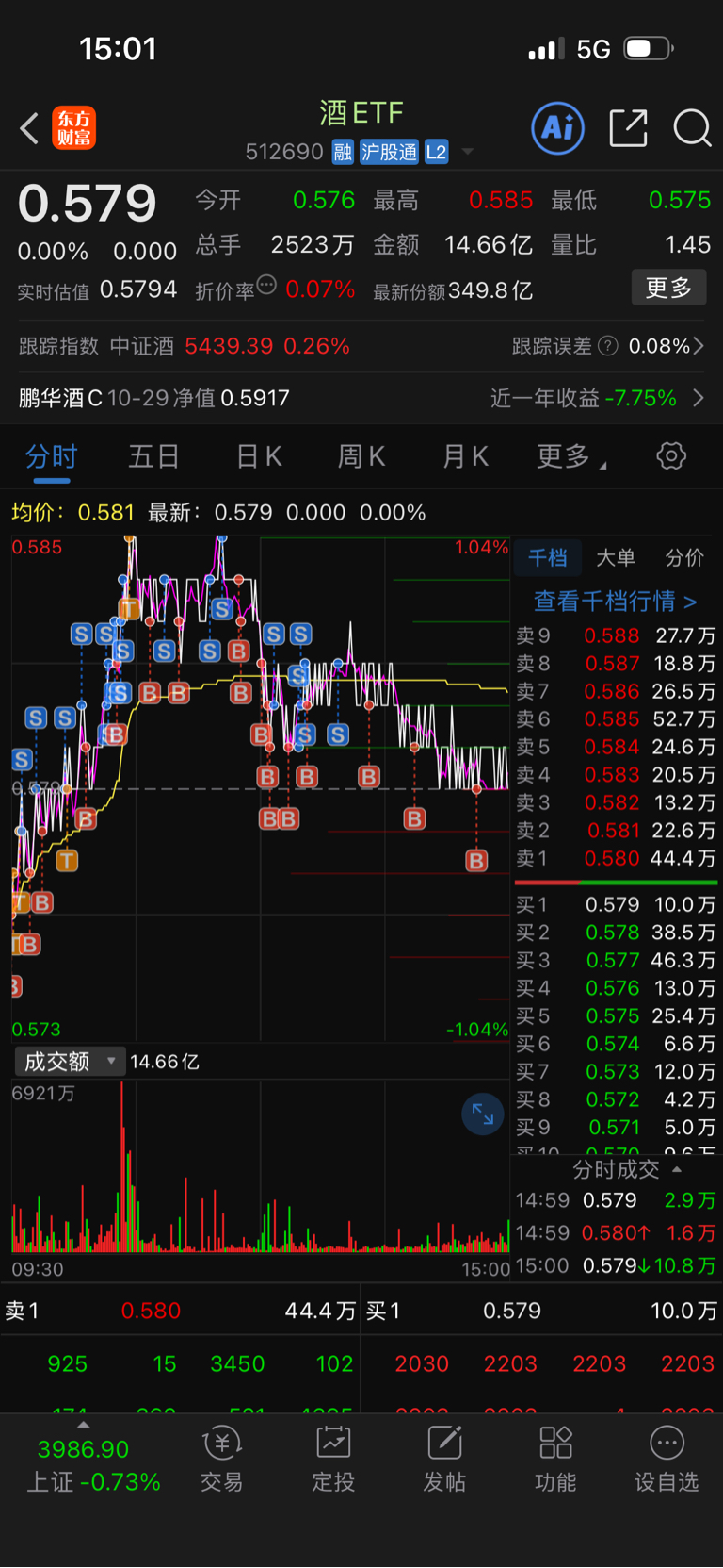 $酒ETF(SH512690)$ 第四天,接着玩……