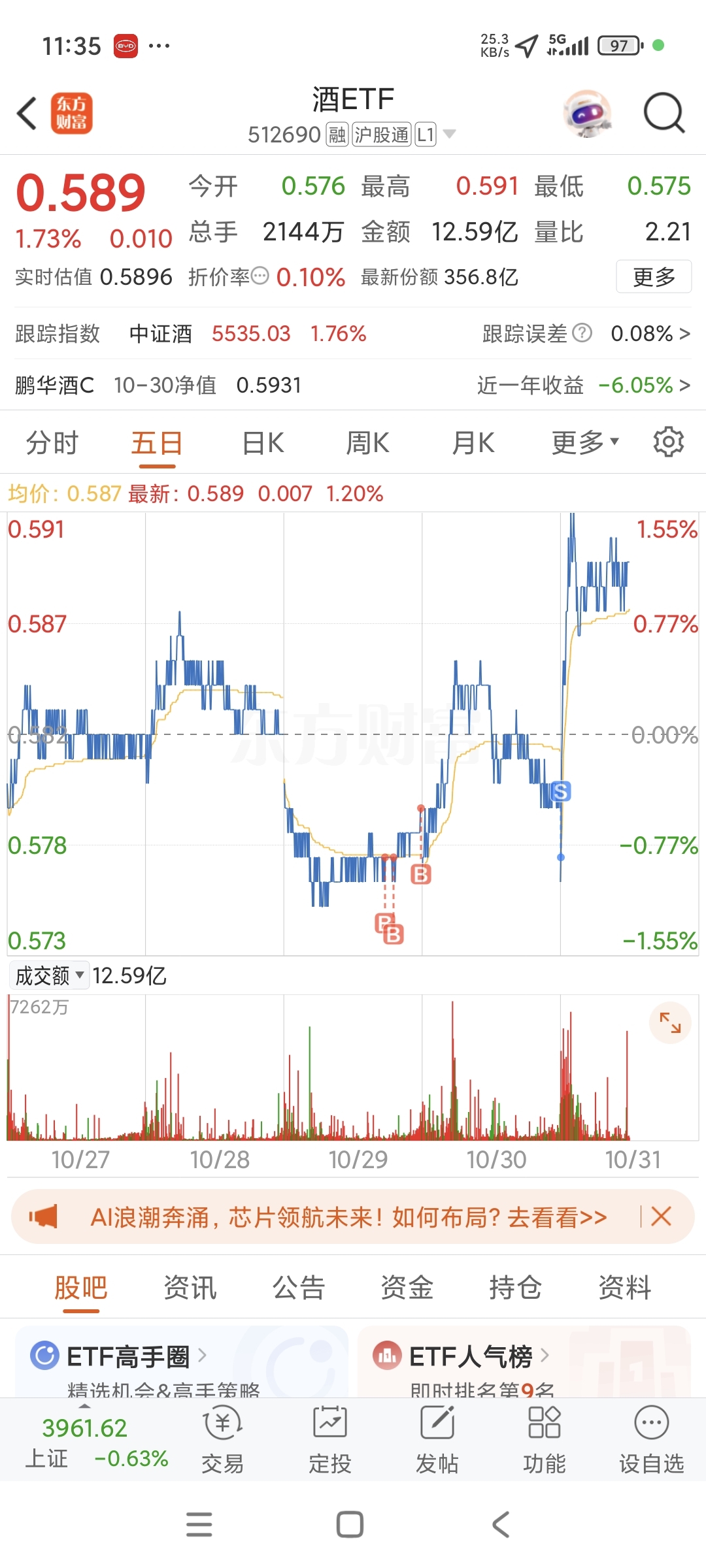 $酒ETF(SH512690)$ 没有赚钱的命~