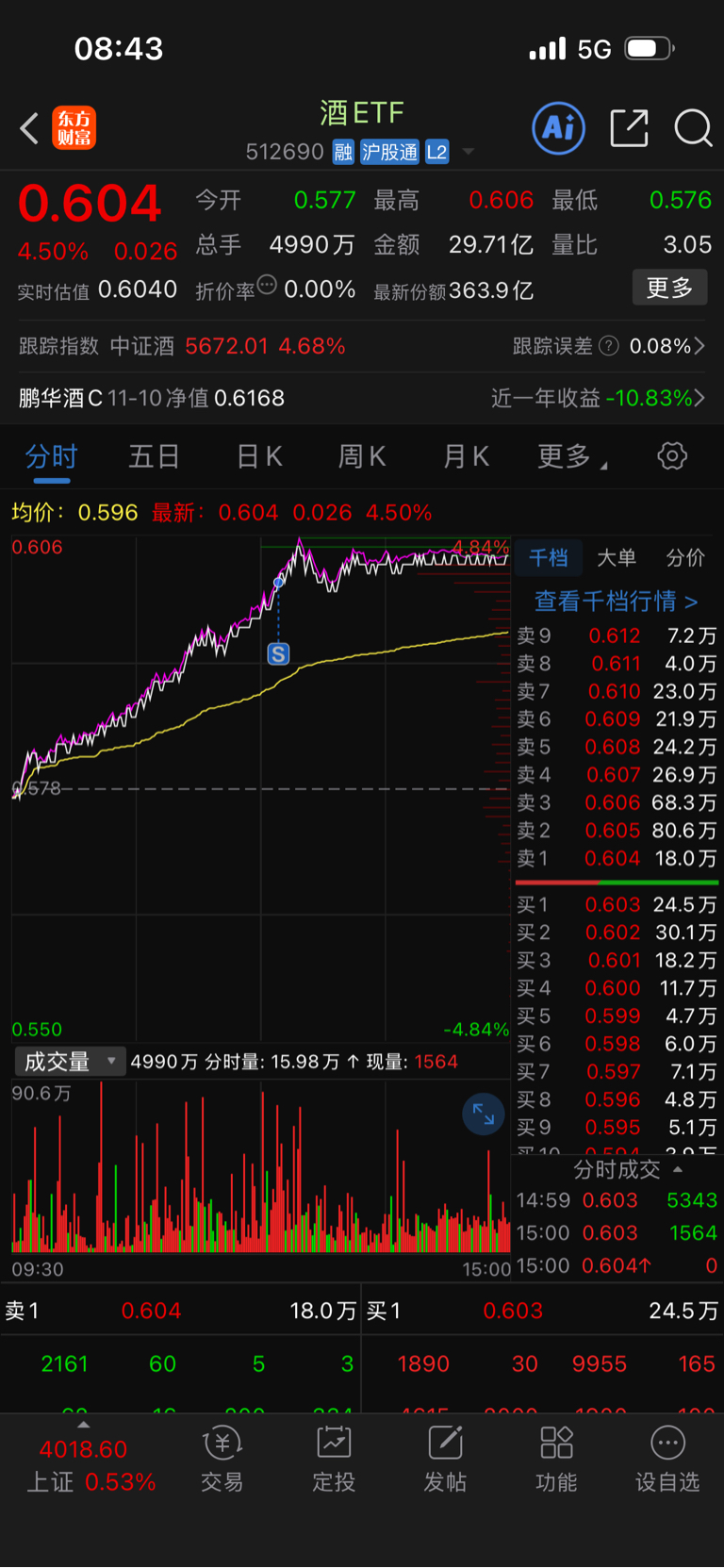 $酒ETF(SH512690)$ 今天有机会上车吗?