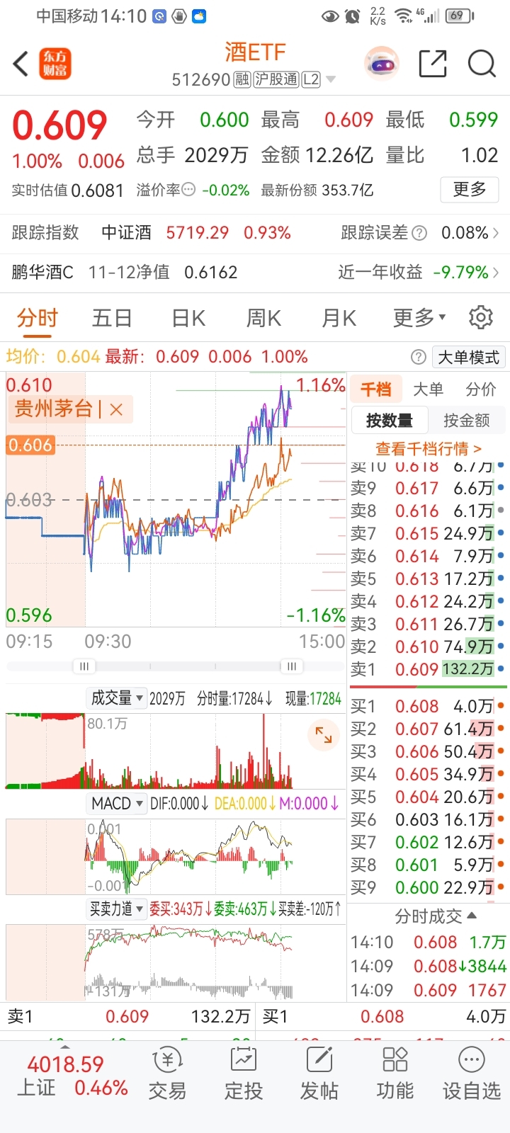 $酒ETF(SH512690)$ 今天主力死死压着0.609的位置不让涨,没戏