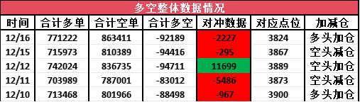从各个宽指各个月份的汇总数据来看,短期多头主力们增持了多单55249手,空头主力们增持了空单53022,对冲之后多单净增2227手,对冲之后多空合计净持有的空单量减少到了92189手,压力所有降低。