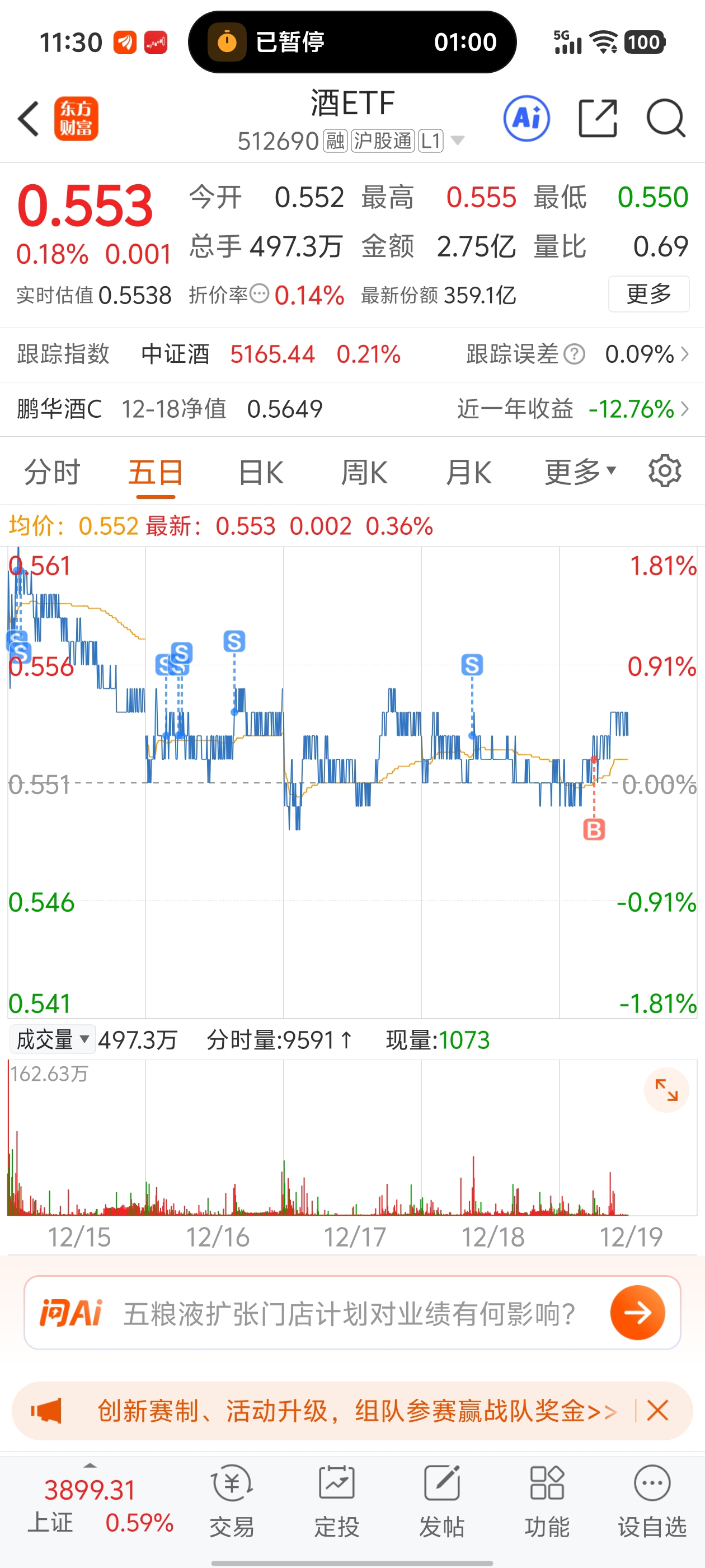 $酒ETF(SH512690)$ 我是大学生,昨天卖光,今天又回来了,根据一卖就涨理论,所以决定重新建仓买回来