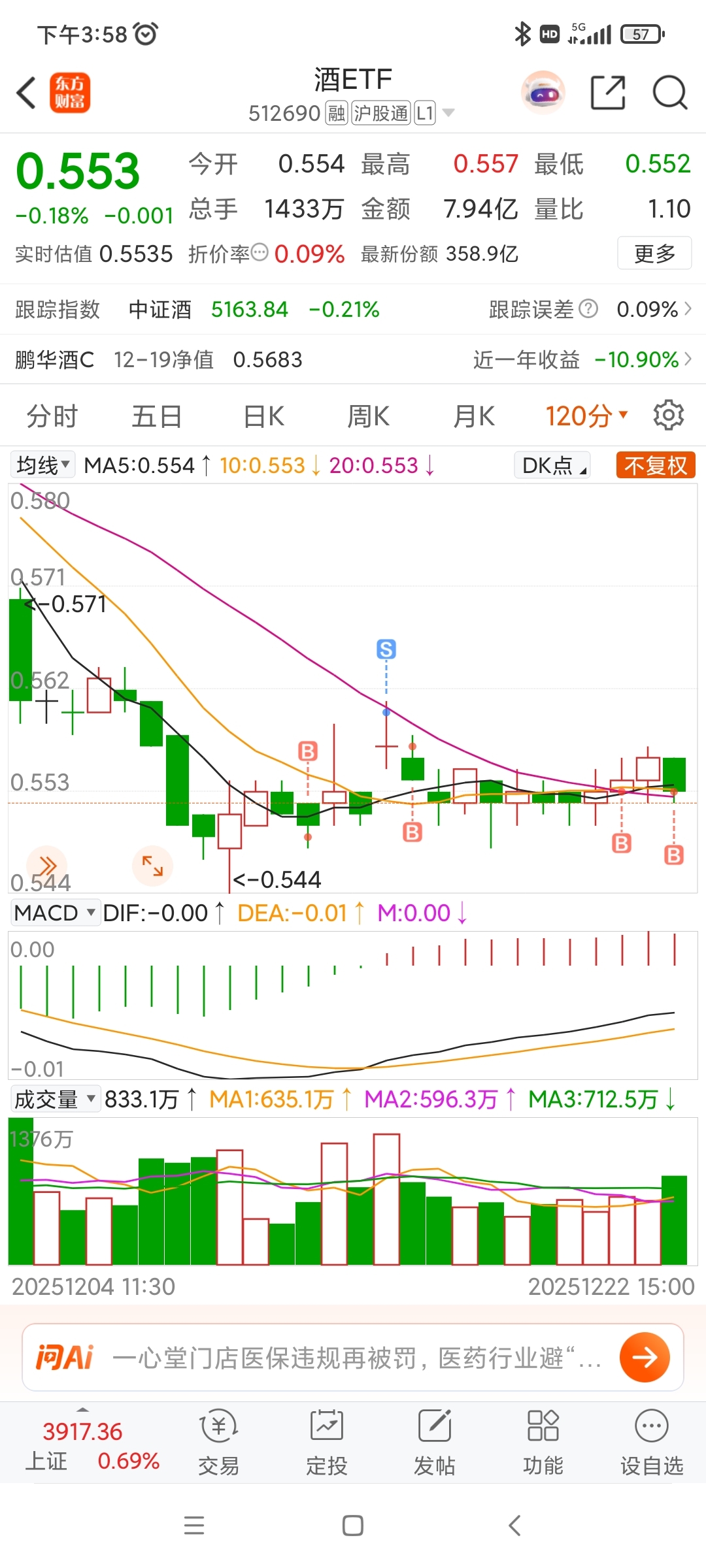 $酒ETF(SH512690)$ 这回进来就不着急走了。每天T一T。