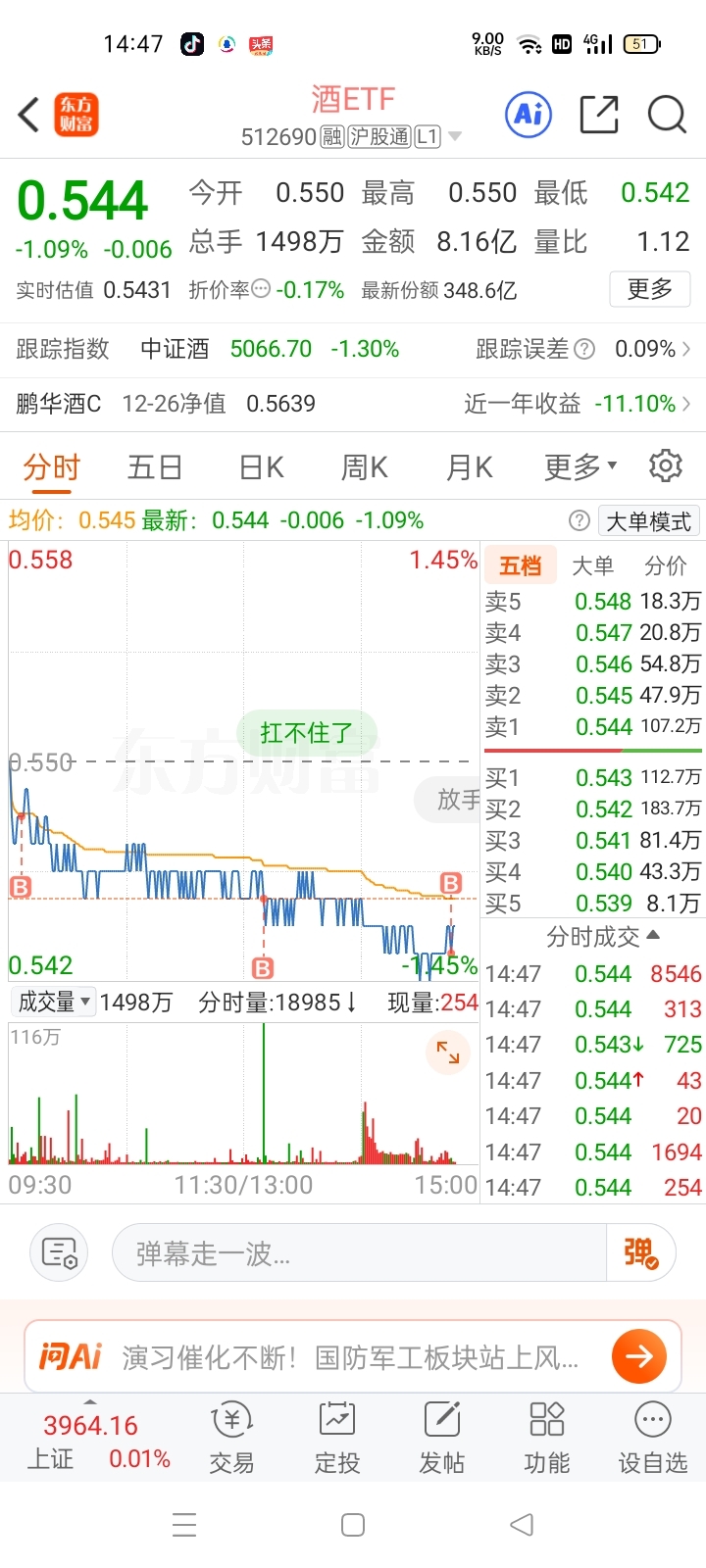 $酒ETF(SH512690)$ 跌就买!又不会退市,到540加一次,537加一次