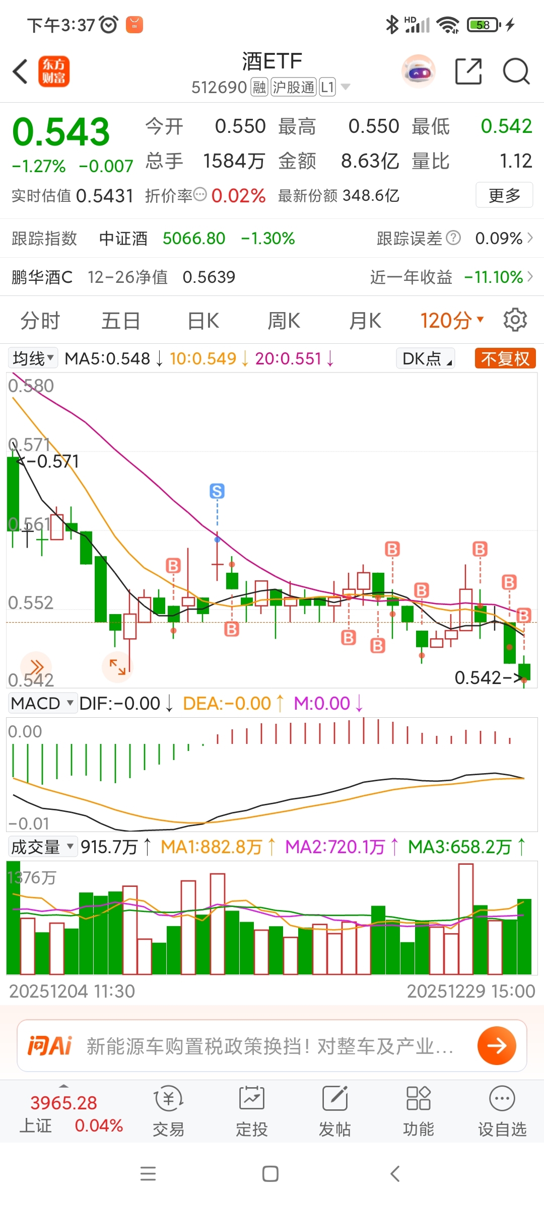 $酒ETF(SH512690)$ 只买不卖,赚10个点卖一半,20个点在卖一半。谁拿筹码便宜谁赚钱。继续砸我继续接飞刀