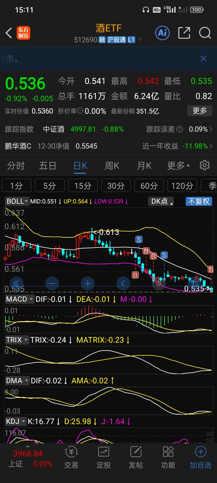 $酒ETF(SH512690)$ 不要吓我好不好,我贴着买都怕,你们崩什么0.58本0.55本,0.544都看不到希望,溺水啊