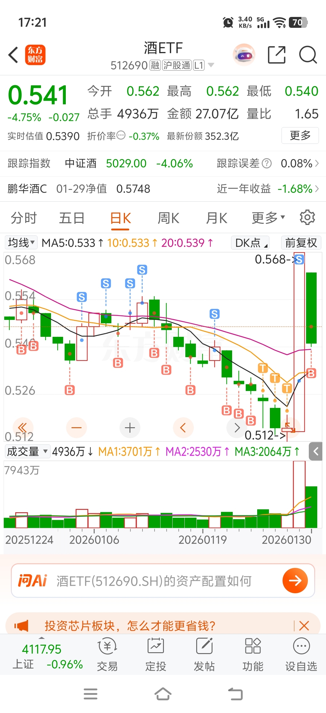 $酒ETF(SH512690)$ 昨天卖飞,今天又高价买回来,我服了