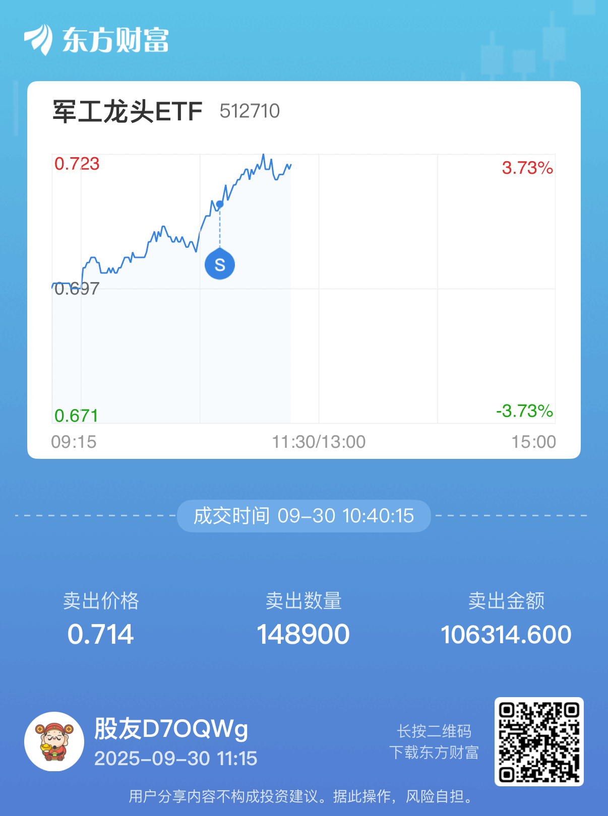 $军工龙头ETF(SH512710)$ 卖飞了。。唉