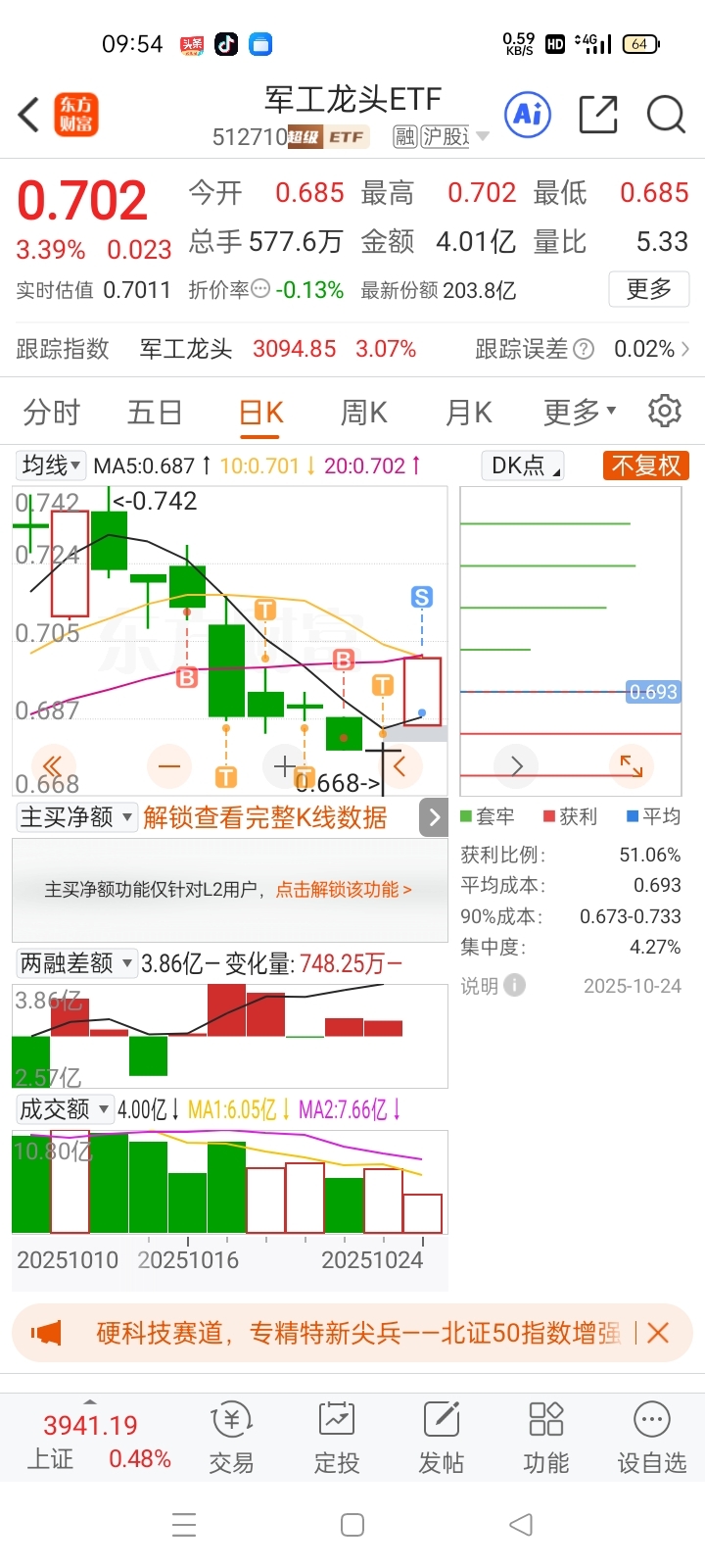 $军工龙头ETF(SH512710)$ 守住了下跌,没守住上涨,