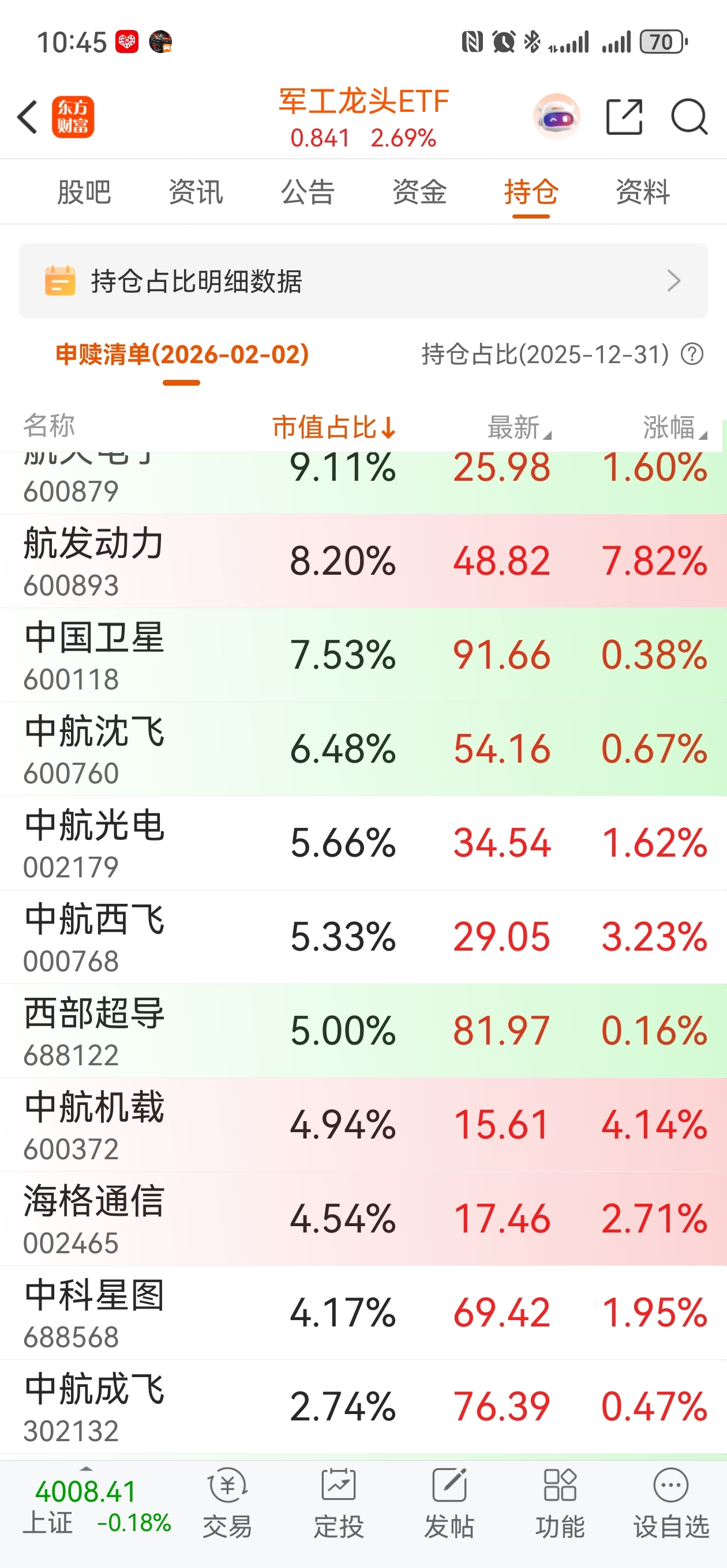 $军工龙头ETF(SH512710)$ 一整筐股票都是红的。
