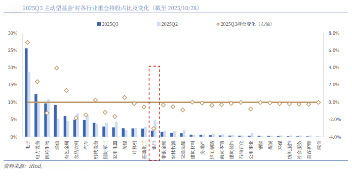 2025年三季度公募基金持仓数据揭示,主动型基金对银行股持仓比例降至1.81%,被动型基金降至5.44%,均创2020年以来新低。国有行、股份行、城商行仓位全面下降,其中城商行由超配转为低配0.36%,国有行低配比例扩大3.52个百分点至9.96%。这种“清仓式减配”背后,既有市场风格切换的被动因素,也隐含着对银行股长期价值的认知偏差。监管层推动的公募基金业绩比较基准改革,将强制公募基金重新审视持仓结构与基准指数的偏离度。当市场主流资金被迫回归基准权重时,银行股作为指数重要成分股,其配置价值将得到系统性提升。这种“被动增量”的预期,在历史持仓低位的背景下,构成强烈的价值回归动能。