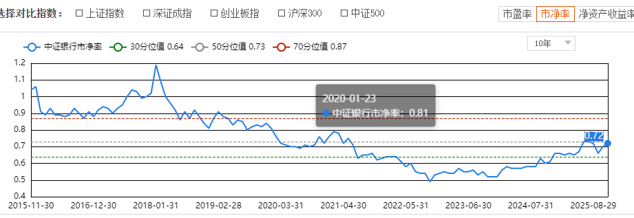 从估值维度看,当前银行板块PB处于0.72倍的历史后30%分位,股息率显著高于10年期国债收益率约200个基点,配置性价比突出。银行ETF指数(512730)作为一篮子银行股的投资工具,通过分散化投资有效降低个股风险,同时享受行业整体估值修复带来的资本增值机会。